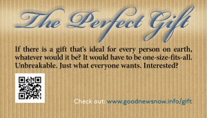 Scanning the QR code on the back using a smart phone or tablet will link to the advertised audio message at Good News Now. The website url is included so the messages may be heard on a home computer or laptop.